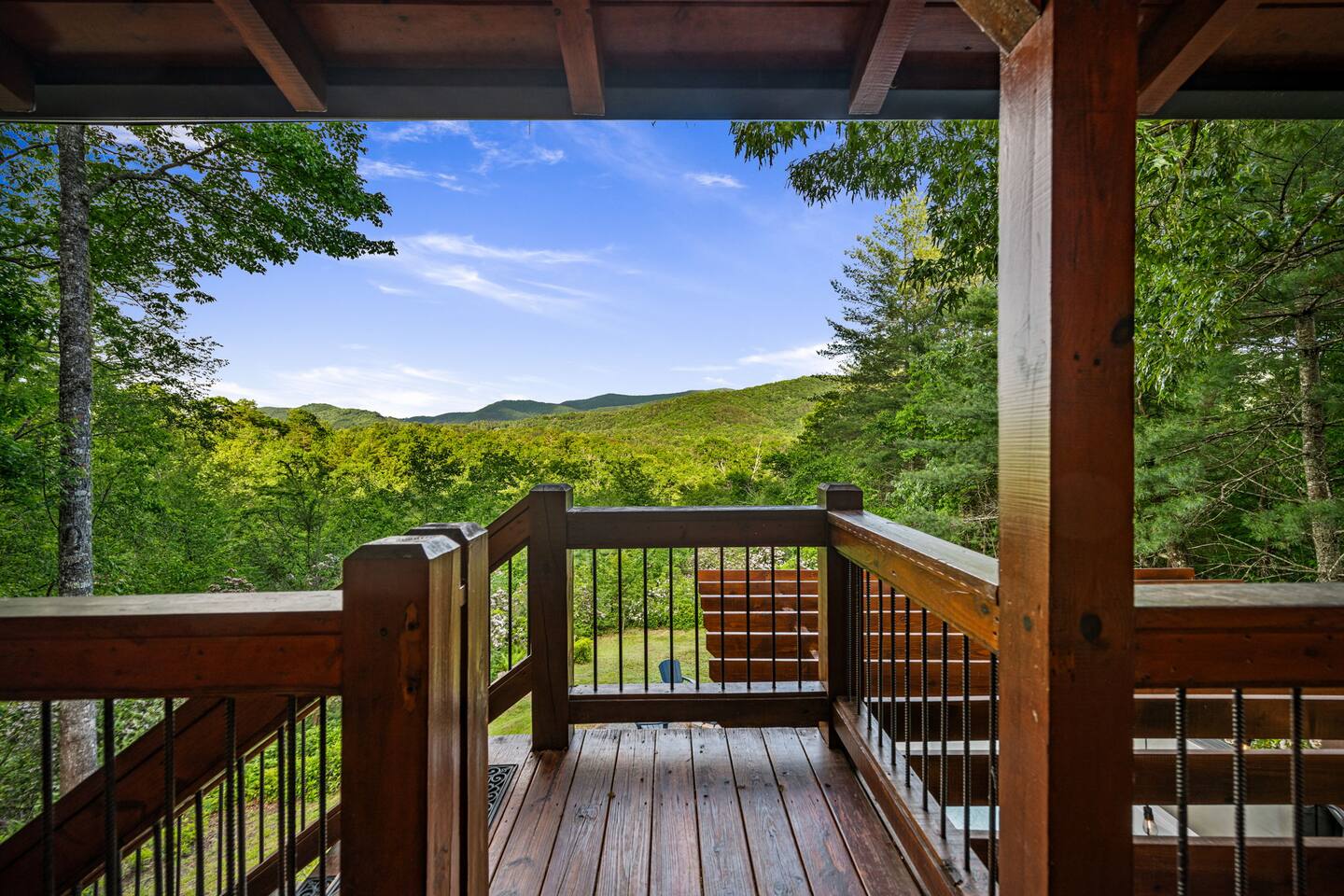 -All paved roads for easy access -Coffee and tea bar featuring Nespresso coffees and Numi organic tea -Hot tub with stunning mountain views -Large fire pit area with four Adirondack chairs -Spacious covered seating area with a variety of outdoor games -Weber gas grill plumbed with propane for your use -Big Green Egg for charcoal grilling -Luxury bedding, ceiling fans, and blackout curtains -Robes and slippers for your stay -Marshall Bluetooth speaker -Fully equipped kitchen with a variety of stemware, EVOO, balsamic vinegar, and cooking spices -Perfectly situated between Blue Ridge (6 miles) and Ellijay (11 miles)