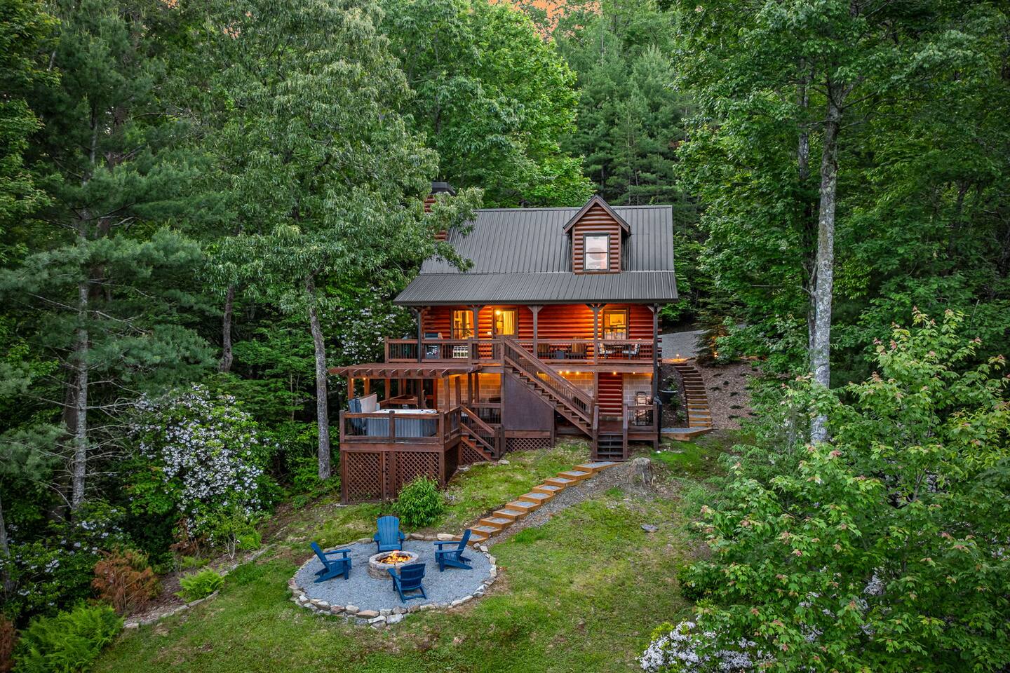 Welcome to Juniper Chalet, a luxury mountain retreat designed for the ultimate romantic getaway and perfect for those seeking tranquility. Here, breathtaking views meet bespoke comfort, offering an intimate setting to unwind, reconnect with nature, and immerse yourself in the serene beauty of the North Georgia mountains. Every detail has been thoughtfully crafted to create a luxurious escape.